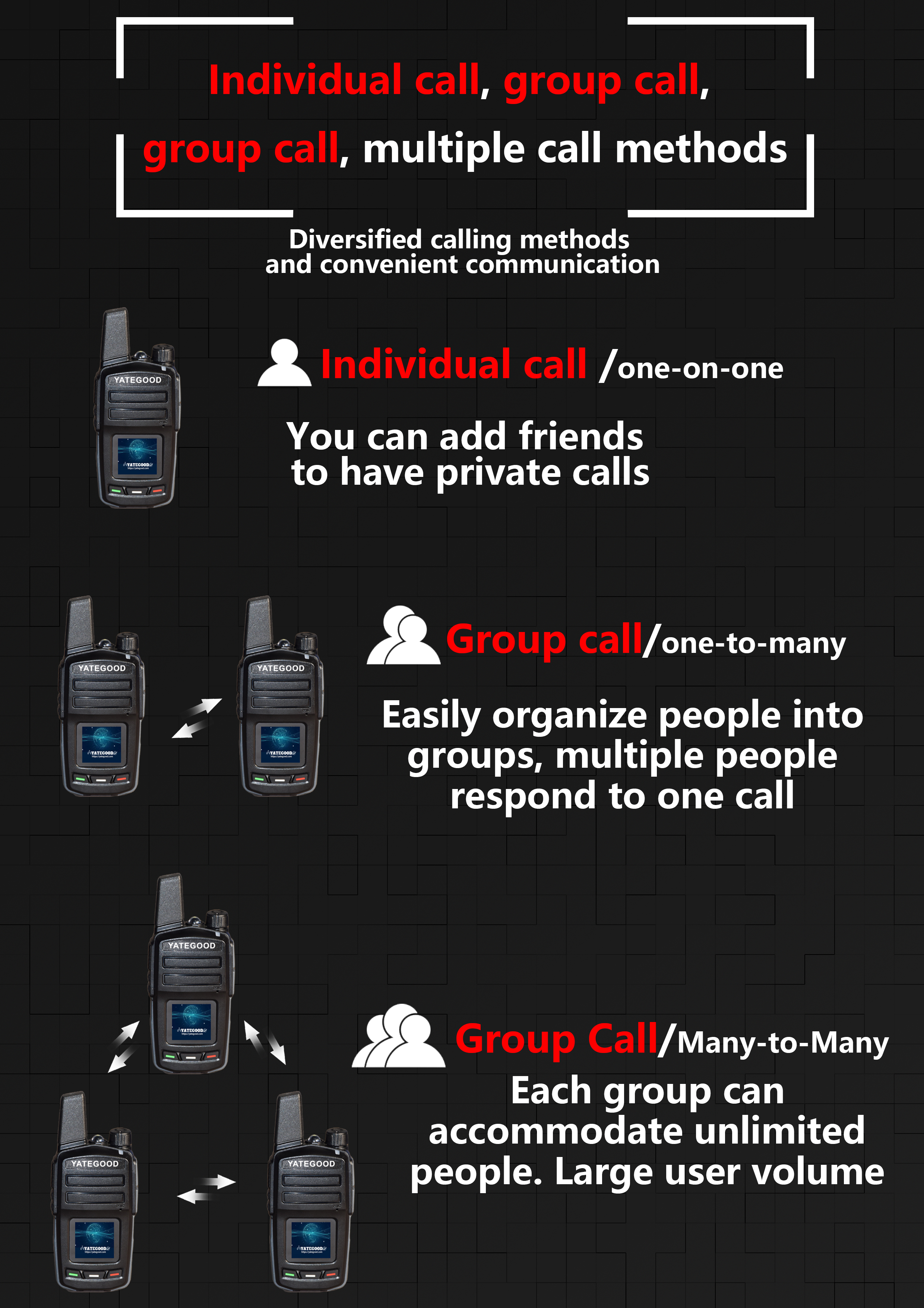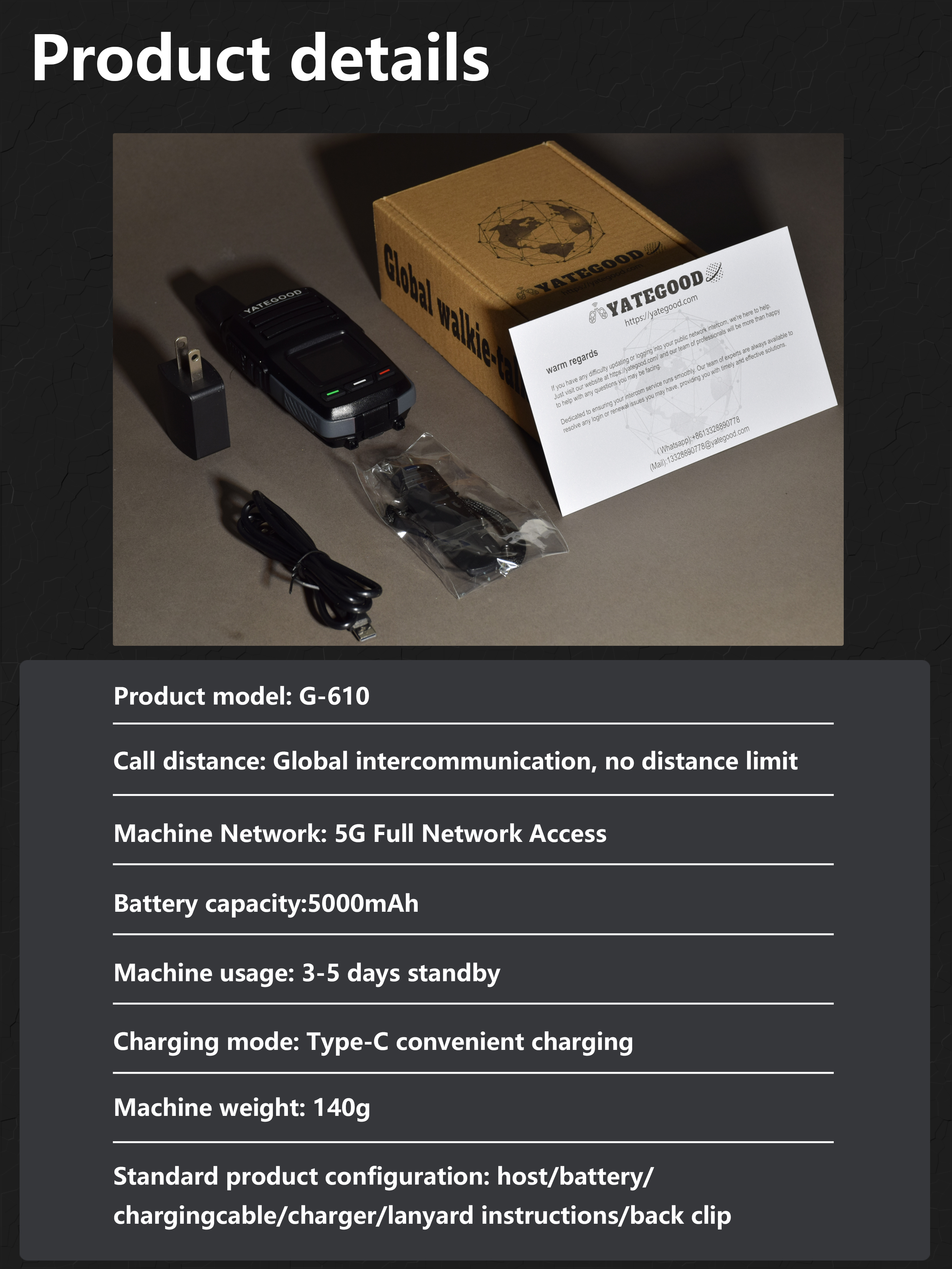 Call distance:Global intercommunication,no distance limit