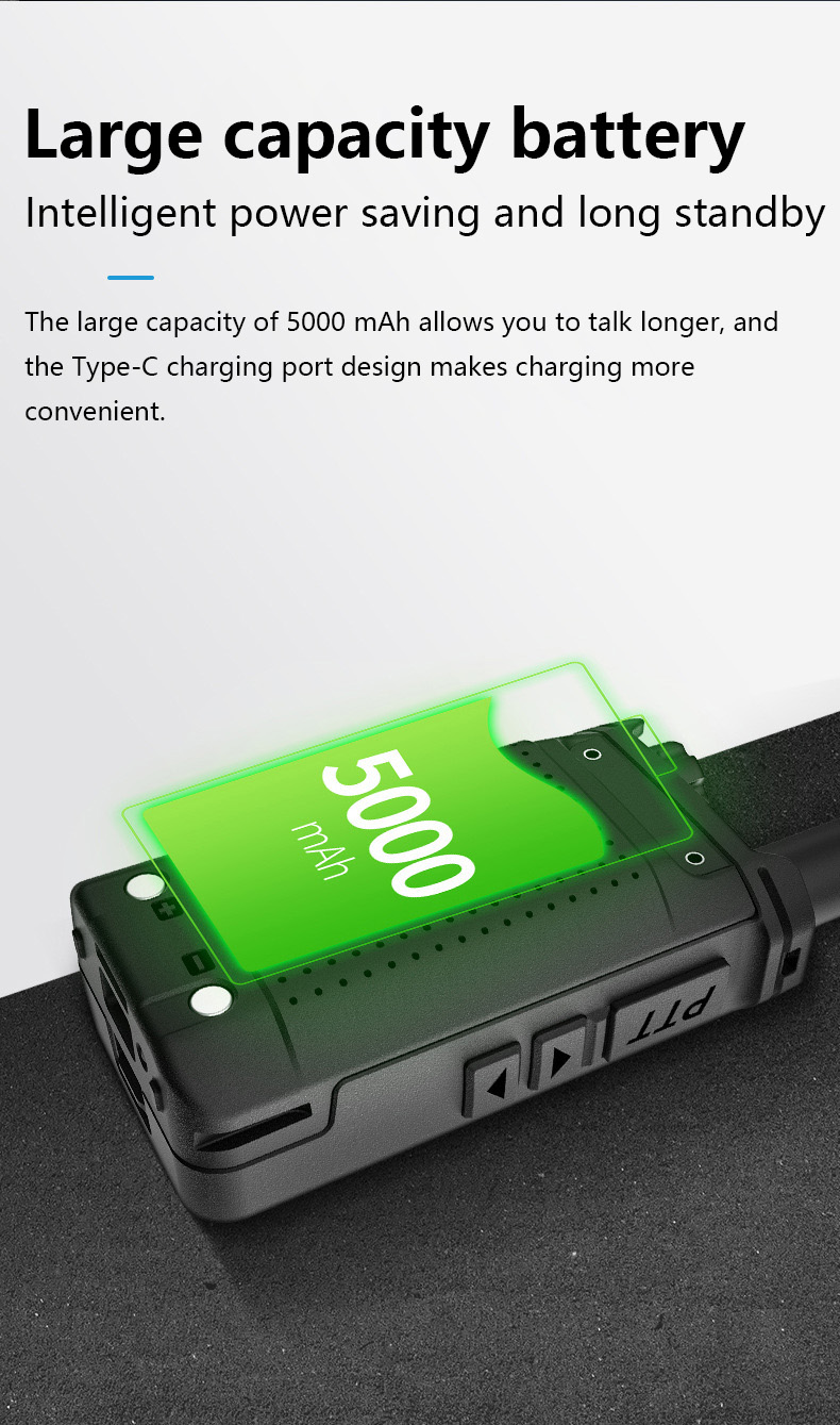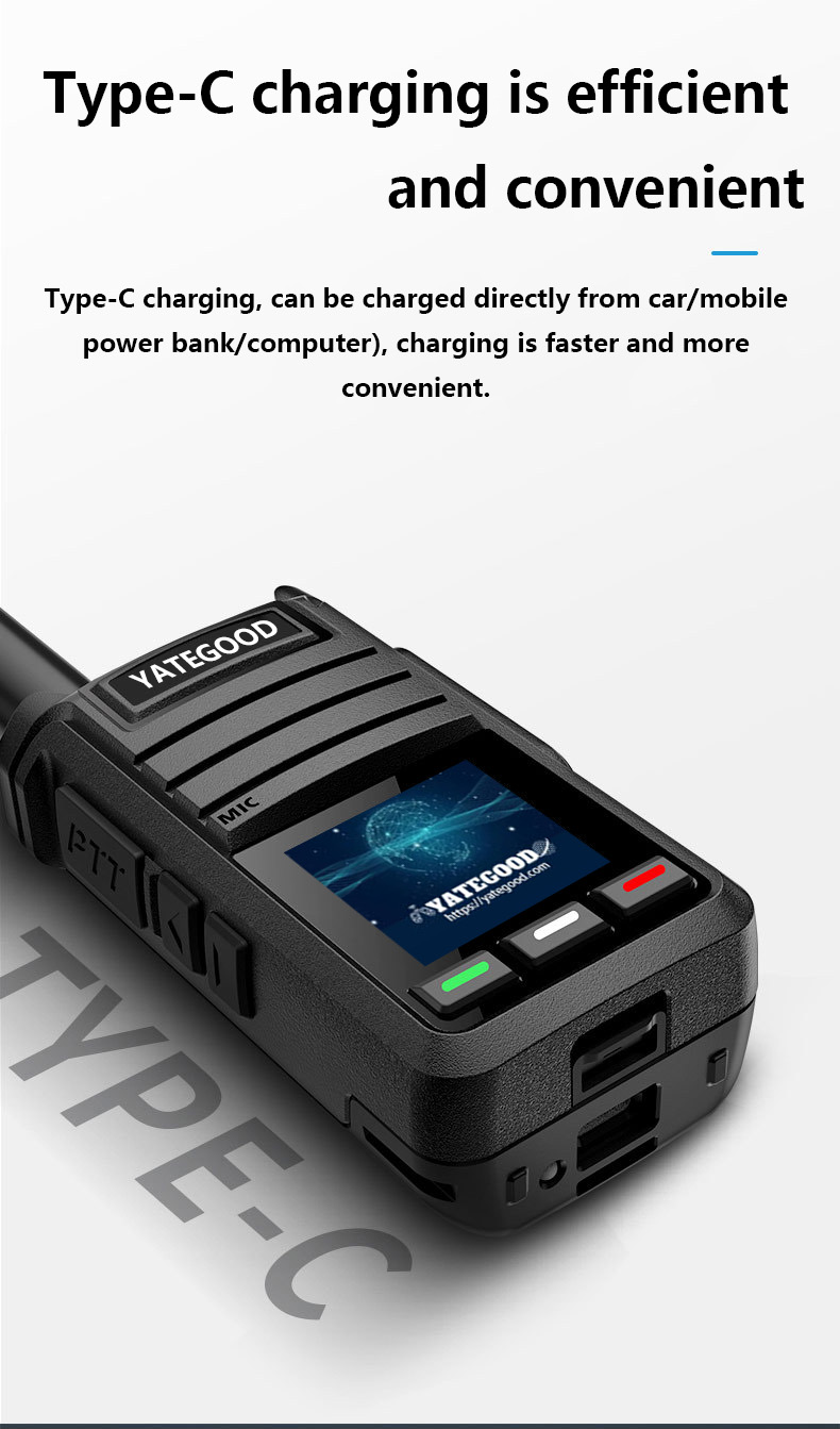 Product Name:G-Y55 Type:4G full network walkie-talkie Use distance:6000KM global intercom Battery capacity: 5000mAh Size:50*31*98mm Charging: TYPE-C interface