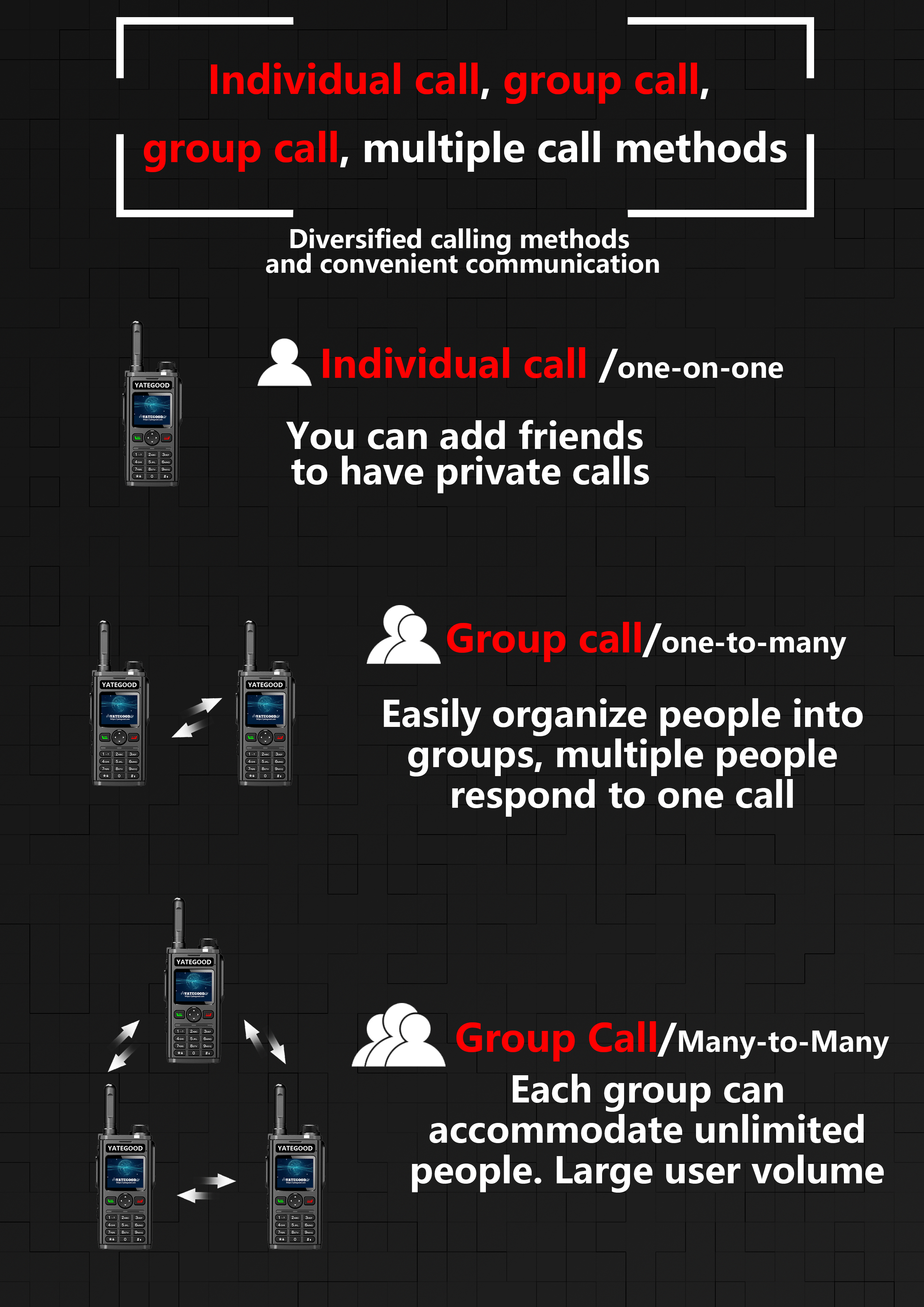 Walkie-talkie.global.unlimited.No signal. Forest. Mountain. Hospital. 对讲机YATEGOODYATEGOOD