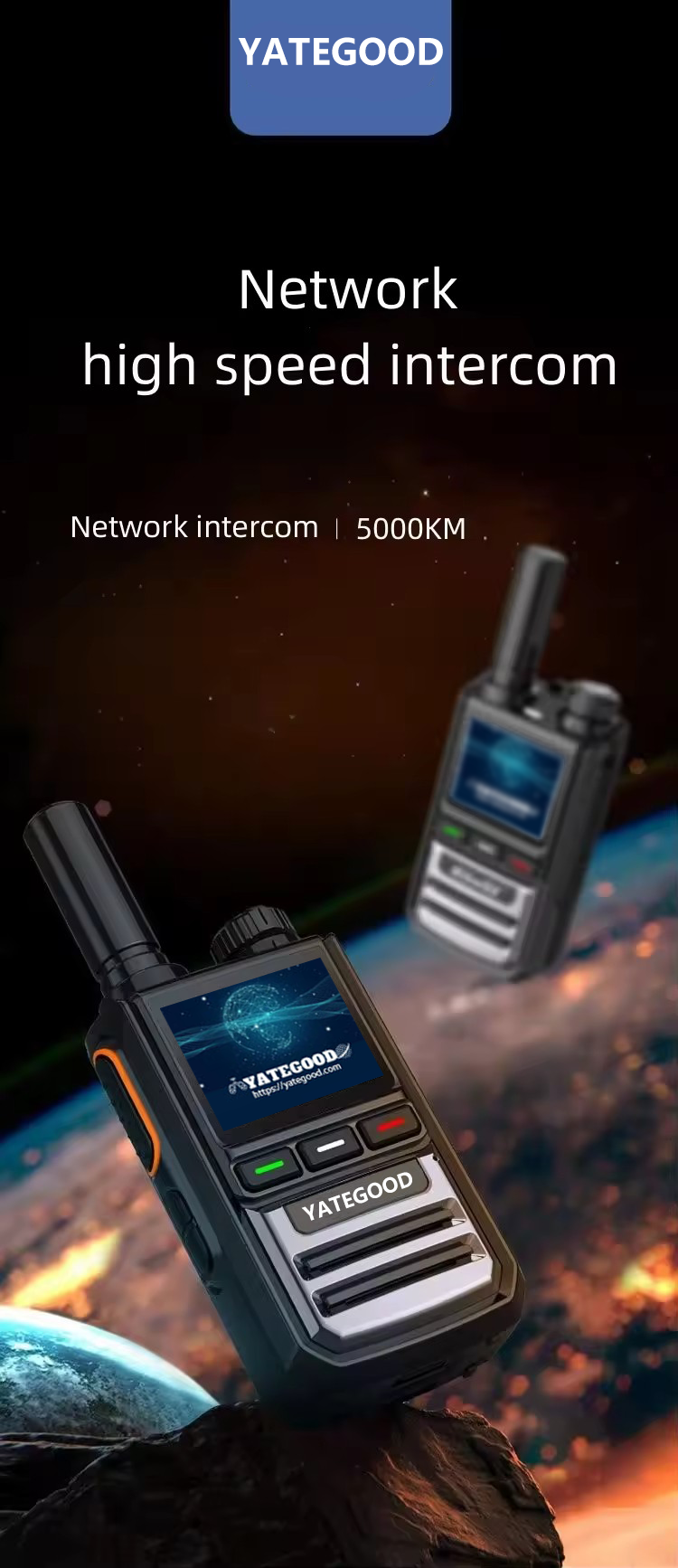 The Yategood G6086 is an industrial-grade 4G PoC (Push-to-Talk over Cellular) radio designed for users who require zero-distance limitations. Utilizing advanced LTE network technology, the G6086 provides a staggering 5000KM talk range, effectively turning the world into your local frequency. Built with a ruggedized ABS shell and a high-clarity digital display, this device is engineered to perform